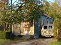 124 Ballentine Street (BD-122) -- Ca. 1900. 1-story 4x2-bay L-plan house with entrances into each section. Diamond-shaped gabled light. Door with round-arched light. (C)